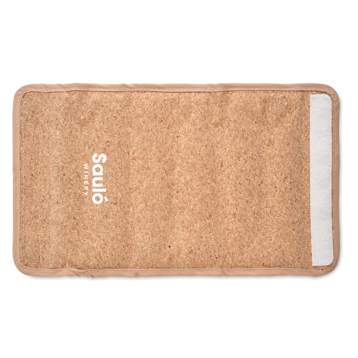 Miękka mata chłodząca do wina z tkaniny korkowej z folią PCV, z żelowym wypełnieniem. Posiada regulowane zapięcie na rzep. Korek jest materiałem w 100% naturalnym. Ze względu na jego strukturę i porowatość powierzchni ostateczny wygląd nadruku na każdym artykule może się różnić.