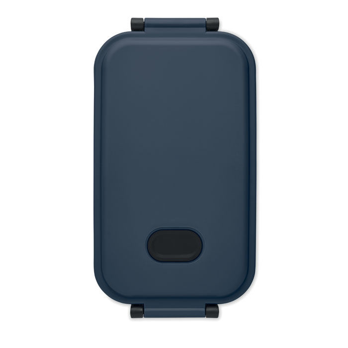 Lunch box z recyklingu PP ze szczelną pokrywą, silikonowym zaworem i dwoma bocznymi klamrami. Pojemność: 800 ml.