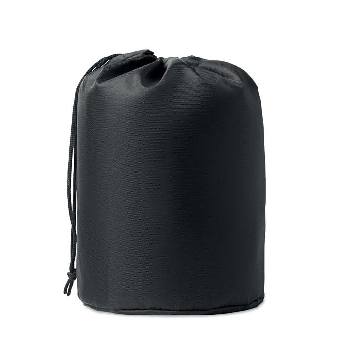 Zestaw 2 aluminiowych garnków kempingowych z zestawem sztućców ze stali nierdzewnej w płóciennym etui. Pojemność: 550ml i 800ml.