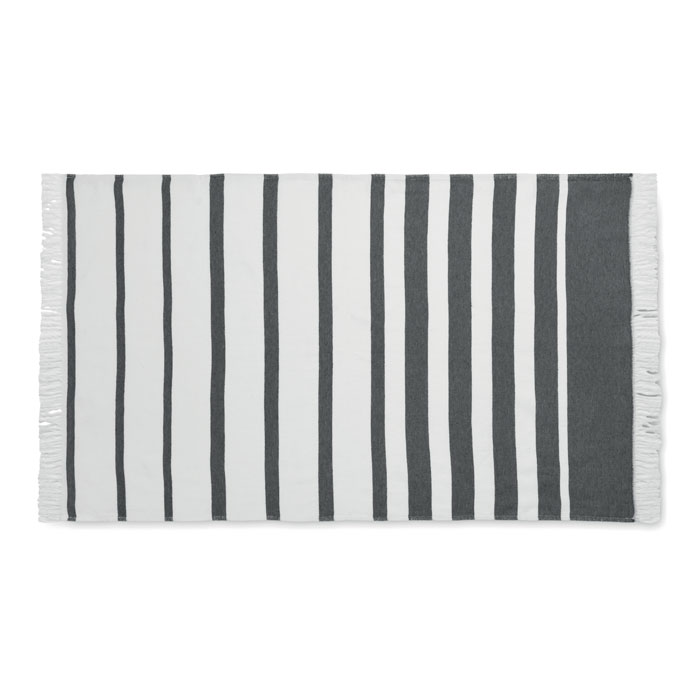 Ręcznik hammam z materiałów z recyklingu, 70% bawełna z recyklingu, 30% poliester SEAQUAL® YARN z recyklingu. 300 gr/m² 100×170 cm. SEAQUAL INITIATIVE współpracuje z organizacjami zajmującymi się oczyszczaniem oceanów na całym świecie, aby nadać wartość odzyskiwanym odpadom. Wyprodukowano w UE.