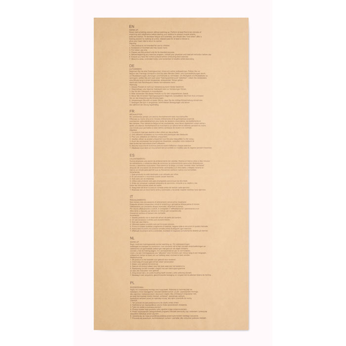 Mata do ćwiczeń jogi wykonana z korka i tworzywa TPE, zapakowana w papierową obwolutę z instrukcją. Grubość 0,4 cm. W komplecie bawełniany uchwyt na linę/taśmę do ćwiczeń. Korek jest materiałem w 100% naturalnym. Ze względu na jego strukturę i porowatość powierzchni ostateczny wygląd nadruku na każdym artykule może się różnić.