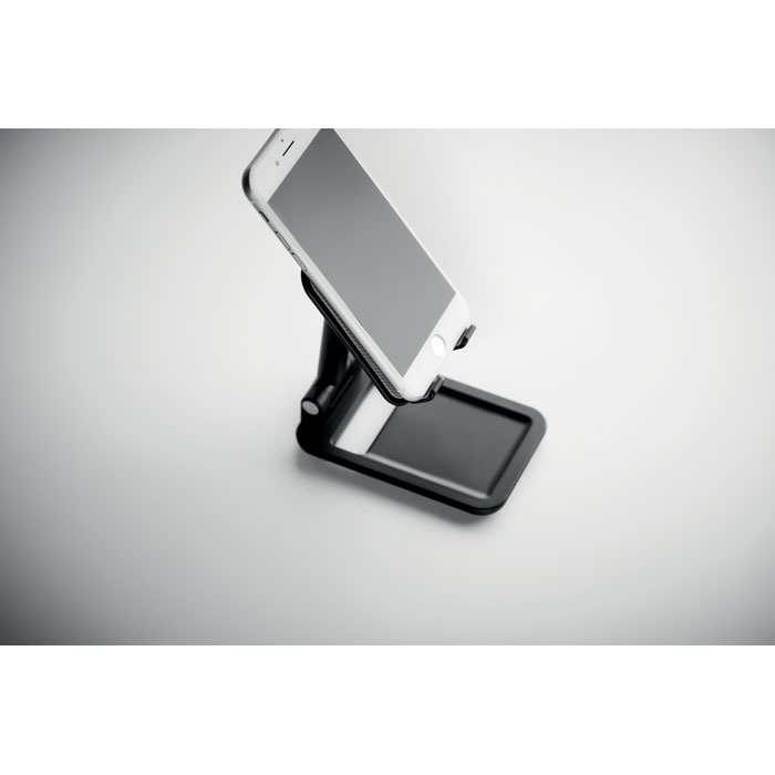 Składany uchwyt na smartfon lub tablet wykonany z tworzywa ABS, z antypoślizgową podstawą. Umożliwia użytkownikowi ustawienie urządzenia pod idealnym kątem.