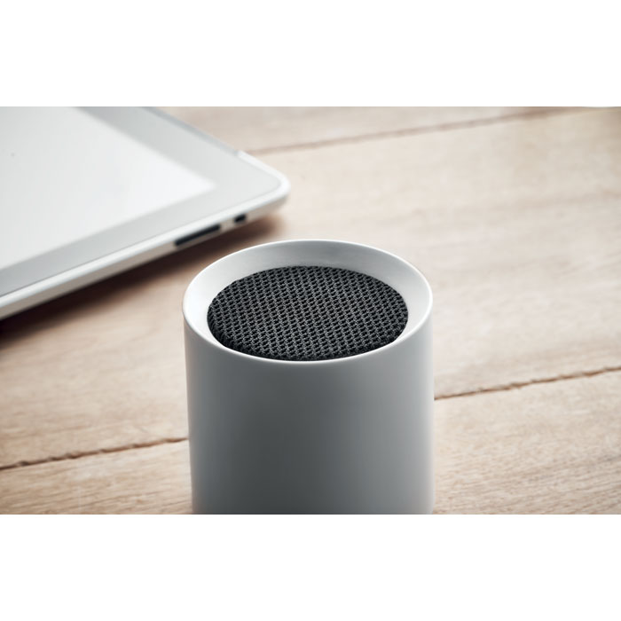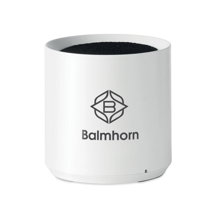 Bezprzewodowy głośnik z recyklingowanego tworzywa ABS 5.0 z sygnalizacją świetlną LED. 1 akumulator Li-ion 300 mAh w zestawie. Dane wyjściowe: 3W, 3 Ohm i 5V. Czas odtwarzania ok. 2h.