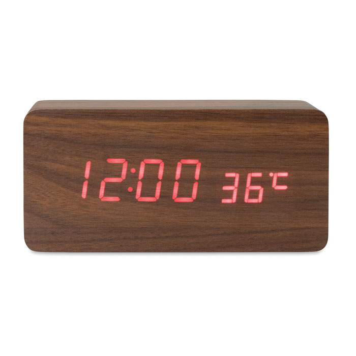 Zegarek LED i termometr z funkcją ładowania bezprzewodowego, wykonany z MDF. Dołączony 2-pinowy (5W) adapter AC-DC. Nie nadaje się do użytku w Wielkiej Brytanii.