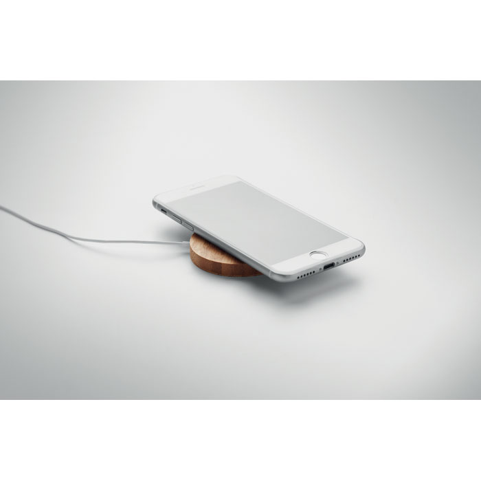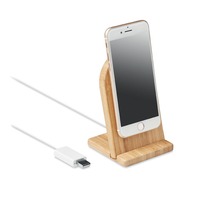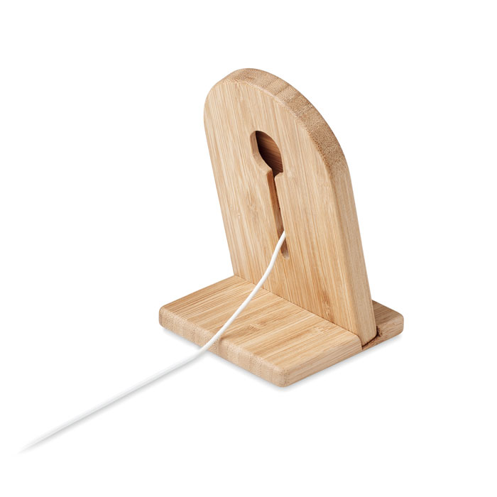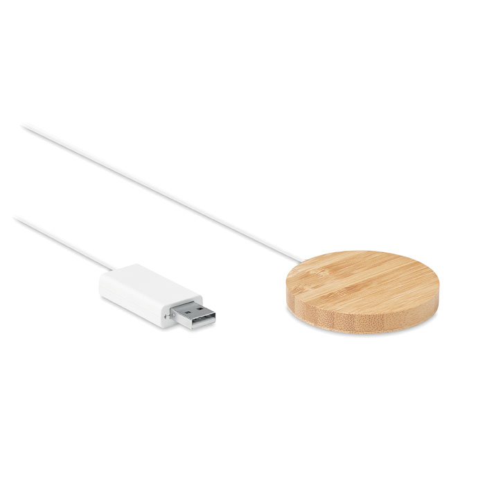 Magnetyczna bambusowa ładowarka bezprzewodowa z podstawką. Wyjście: DC 9V/1.1A (10W). Kompatybilna z iPhone® 12 i nowszymi. Zawiera dodatkowy magnetyczny metalowy pierścień do obsługi ładowania innych niemagnetycznych telefonów bezprzewodowego ładowania. Bambus jest produktem naturalnym, dlatego mogą wystąpić nieznaczne różnice w kolorze, wzorze i rozmiarze.