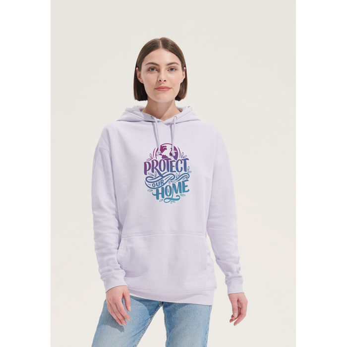 SOL’S CONDOR, bluza unisex z kapturem, 80% bawełna – 20% poliester z recyklingu, certyfikat Grs. Szczotkowany polar 280 z wszytymi rękawami, prążkowane mankiety, kołnierz i dół 1X1. Kieszeń typu kangurka, podszyty kaptur ze sznurkiem i metalowymi oczkami. Informacje na temat dopasowania rozmiarów można znaleźć w tabeli rozmiarów w sekcji dokumentacji produktu.