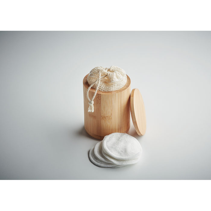 20 oczyszczających płatków do twarzy wielokrotnego użytku z włókna bambusowego, pakowanych w bambusowe pudełko. W zestawie bawełniany woreczek z siatki, idealny do prania płatków. Bambus jest produktem naturalnym, dlatego mogą wystąpić nieznaczne różnice w kolorze, wzorze i rozmiarze.